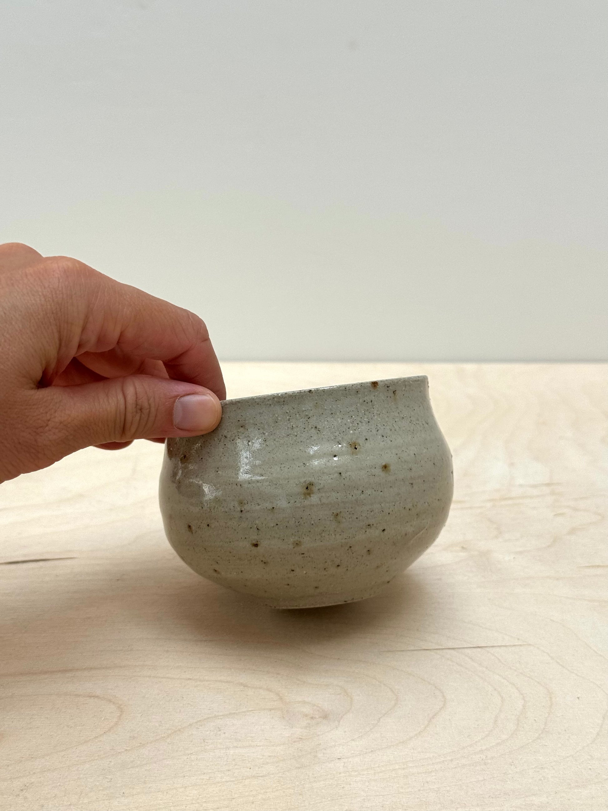 A lovely cup for coffee or tea. Wheelthrown off the hump in a grey speckled stoneware clay. Finished with a gloss clear glaze.