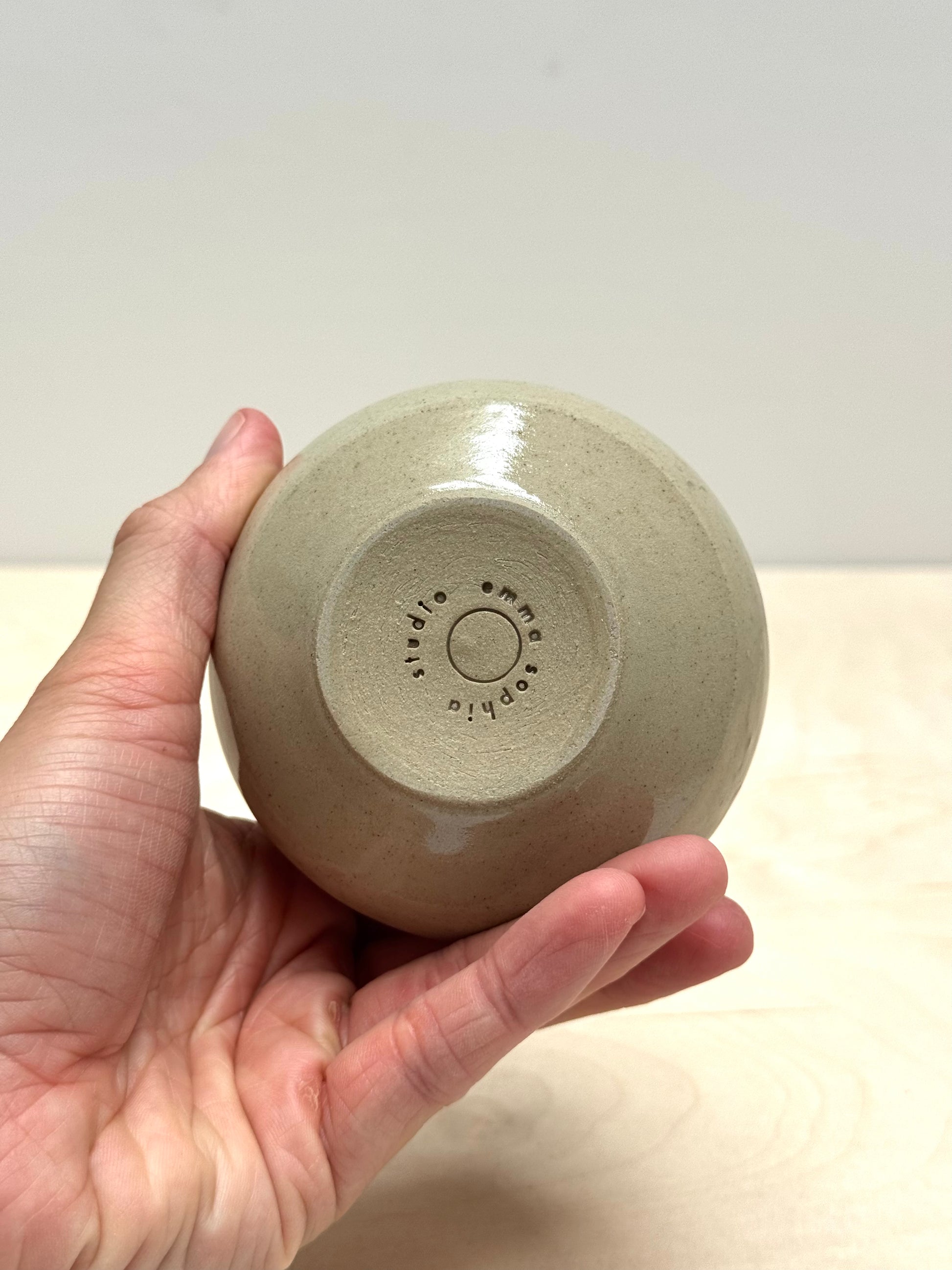 A lovely cup for coffee or tea. Wheelthrown off the hump in a sandy, yellow coloured stoneware clay. Finished with a gloss clear glaze.