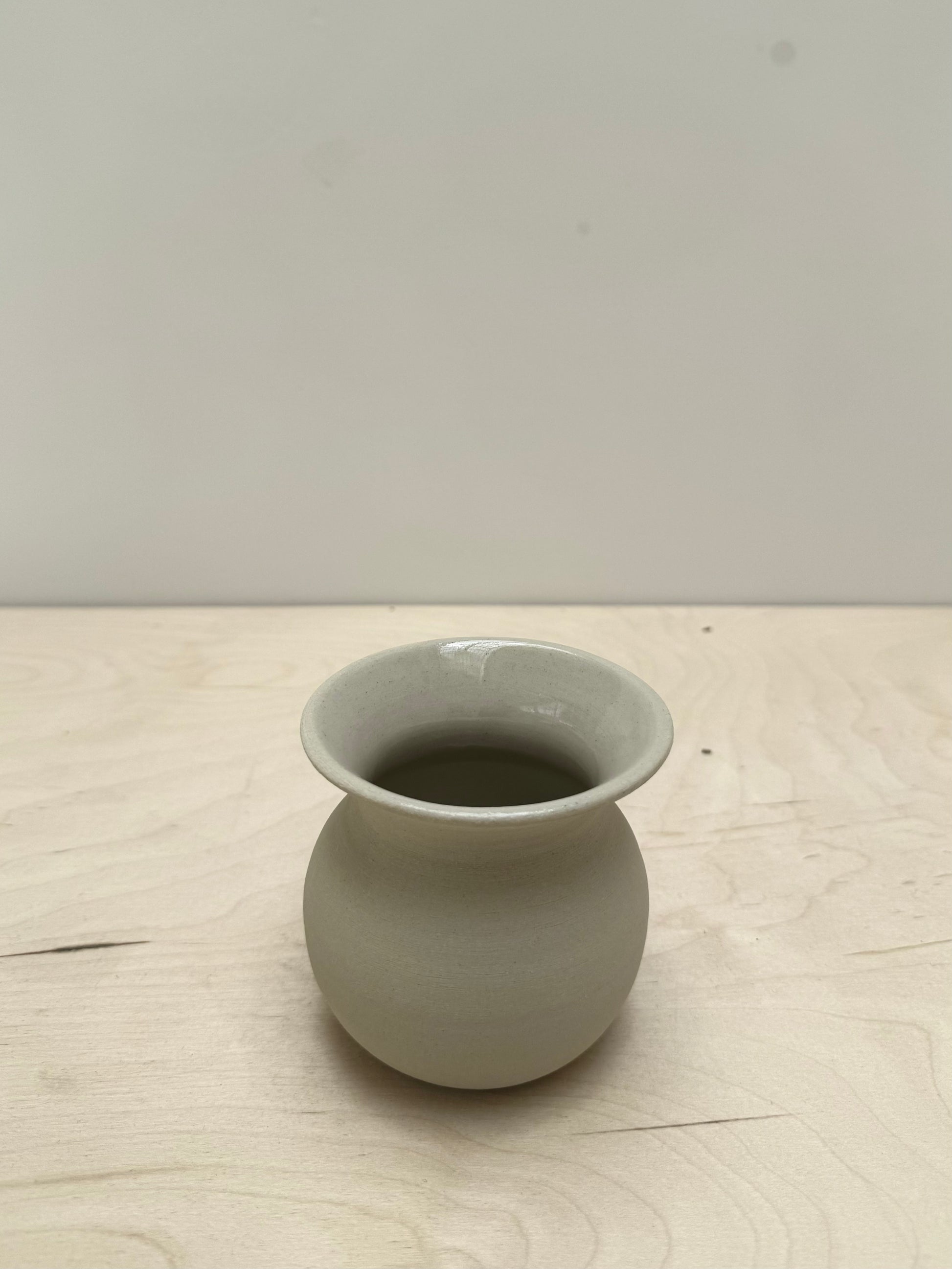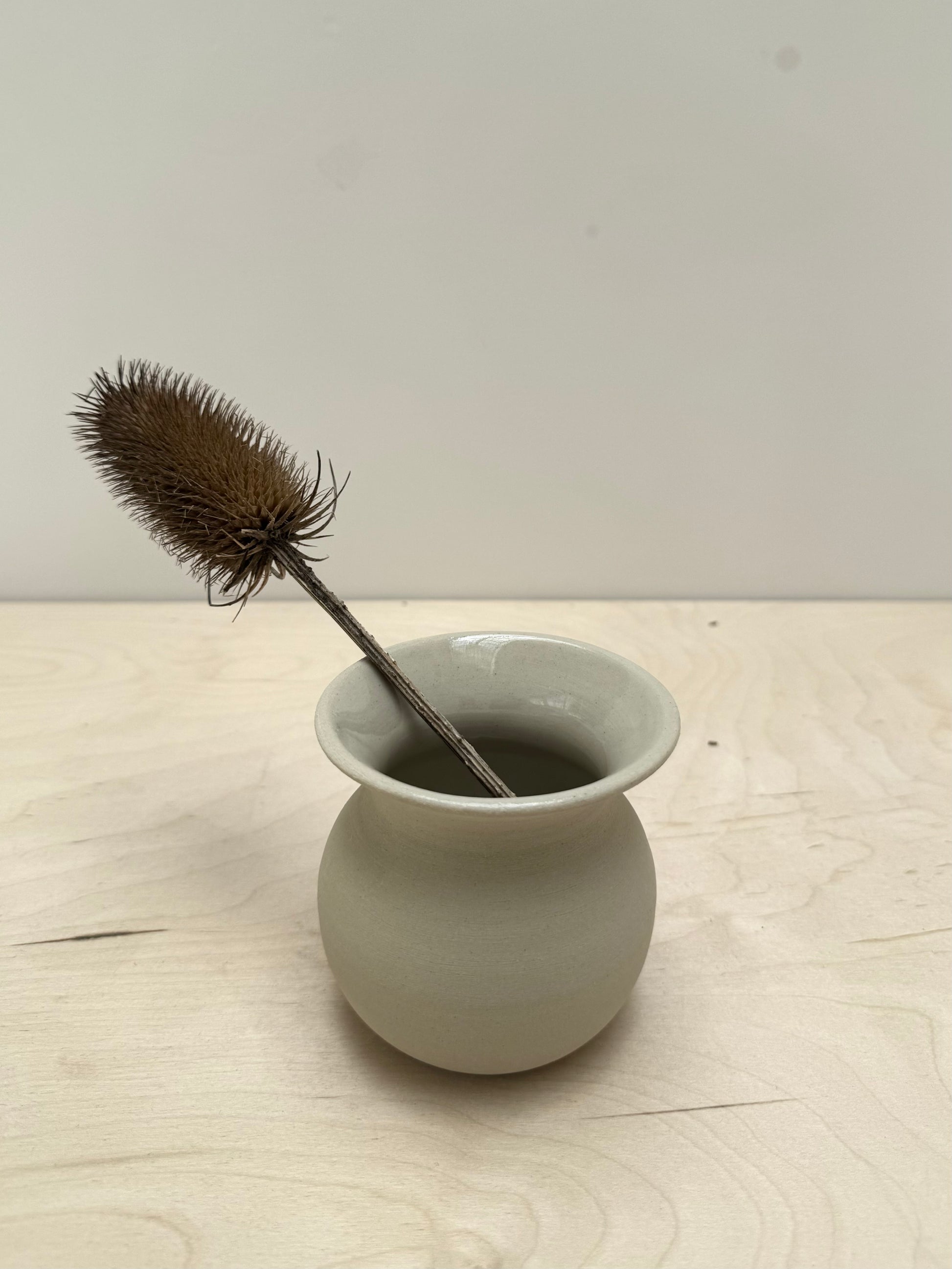 A small vase for fresh flowers. Made with a creamy white stoneware clay, glazed on the inside only with glossy clear glaze.