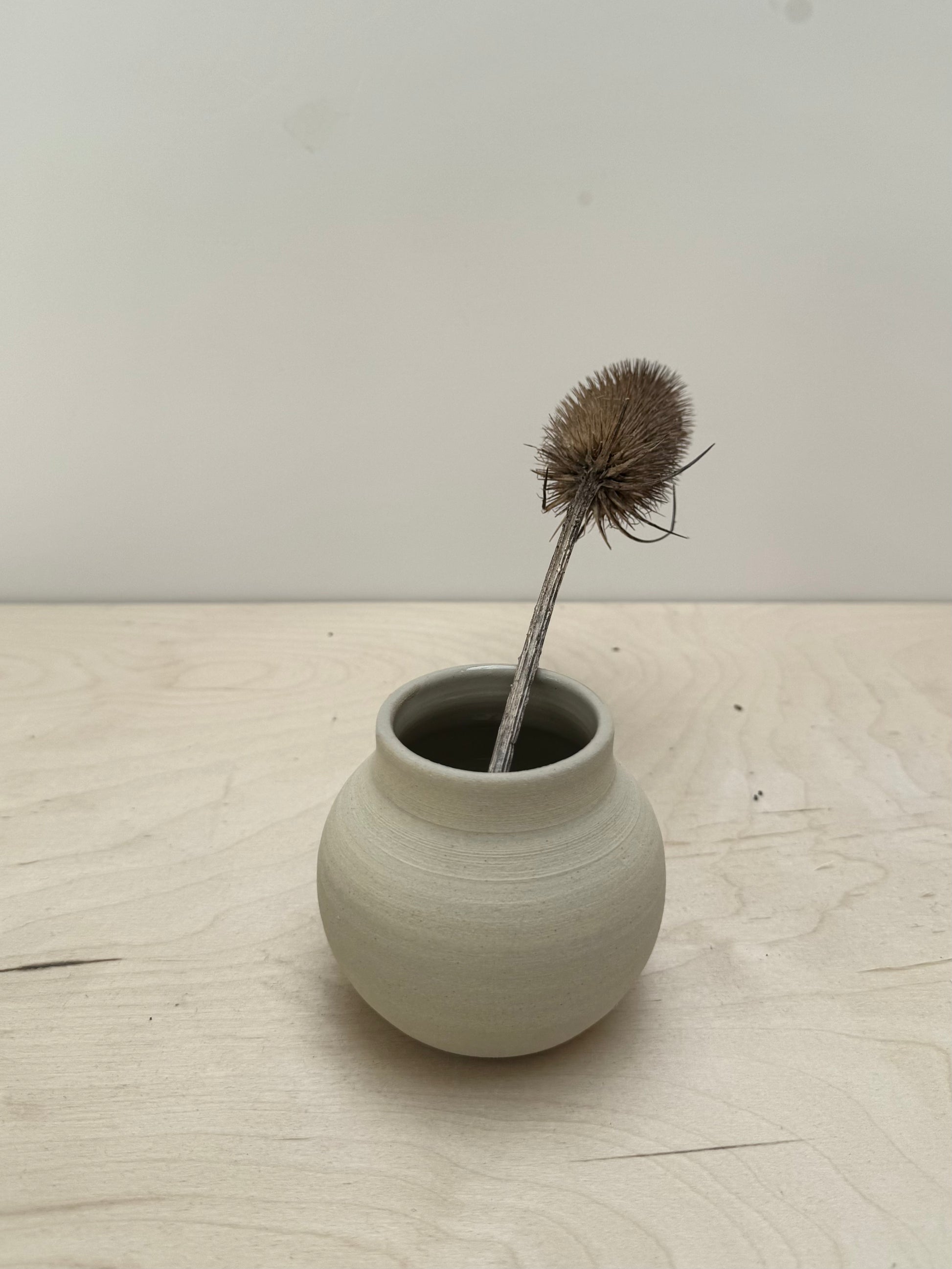 A small vase for fresh flowers. Made with a creamy white stoneware clay, glazed on the inside only with glossy clear glaze.